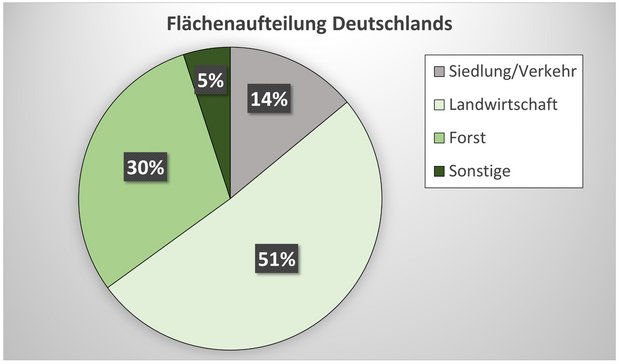 14 % fallen in die Kategorie Siedlung und Verkehr, sind also vornehmlich versiegelt. 30% sind Wald, wobei hier in erster Linie Wirtschaftswälder gemeint sind. Wirtschaftswälder dienen dem Holzertrag, es handelt sich also quasi um vom Menschen angepflanzte „Holz-Felder“ die als Kulturlandschaft zu werten sind. Den größten Anteil bildet die Landwirtschaft mit rund 51% (Stand 2022: BMEL-Statistik). Für die VifaGe bieten die landwirtschaftlich genutzten Flächen das größte Potential. In Zusammenarbeit mit den Landwirten können hier die gravierendsten Änderungen erzielt werden.
