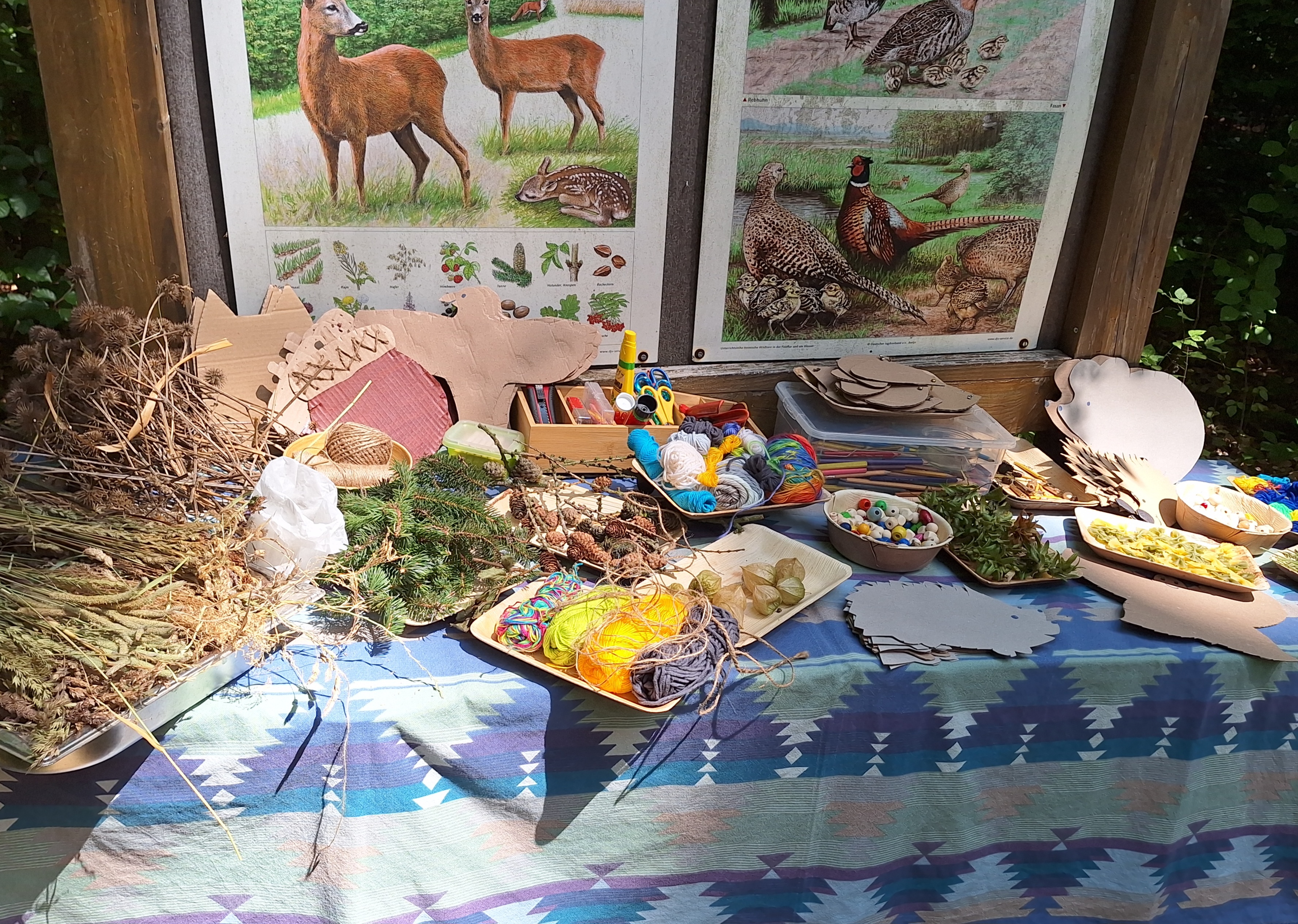 Es standen Figurenbasteln mit Wollresten, Holzperlen und Naturschätzen auf dem Programm. So sind wunderschöne Igel, Haselnüsse, Greifvögel, Eulen und Schmetterlinge entstanden, die die Kinder mit nach Hause nehmen konnten. Beim Waldbingo lernten die Kinder Beeren, Blätter und Pilze besser kennen. Schließlich ging es auf eine abenteuerliche Schnitzeljagd mit allerlei Aufgaben quer durch den Wald.